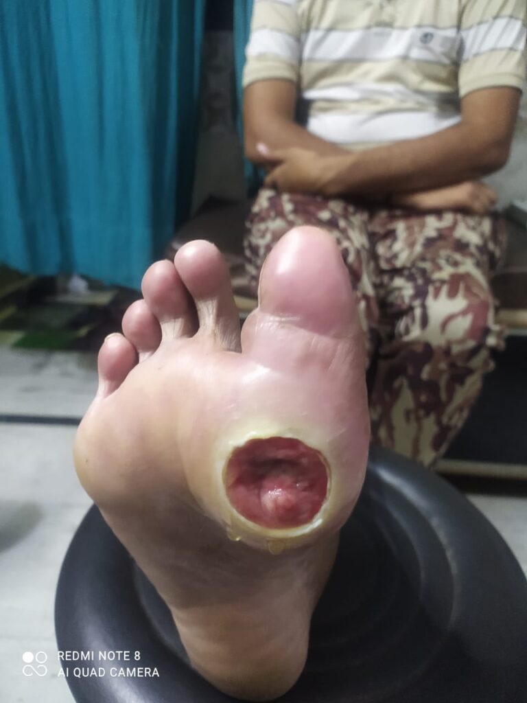 डायबीटिक फुट अल्सर में, जो मरीज मधुमेह से पीड़ित रहते हैं, उनके पैरों में जख्म बन जाता है, यह जख्म बहुत लंबे समय तक ठीक नहीं हो पाता, यह जख्म सुखा या गीला किसी भी प्रकार का हो सकता है, बदबू भी आ सकता है या उसमें पानी पानी सा रिसाव होता रहता है, जख्म में थोड़ी बदबू भी रहती है